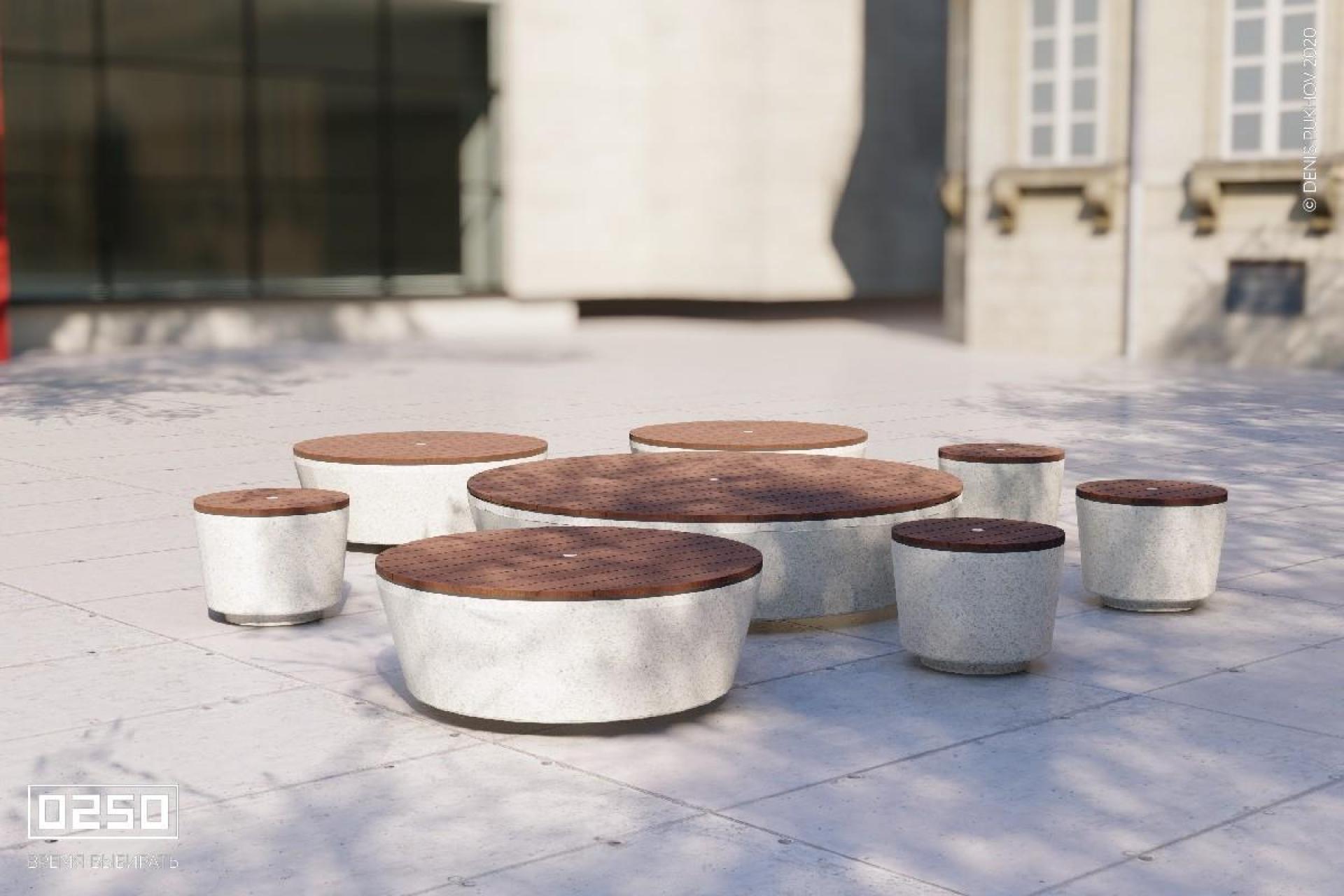 Бетонная скамья Шайба наделяет обычные зоны отдыха новыми смыслами: