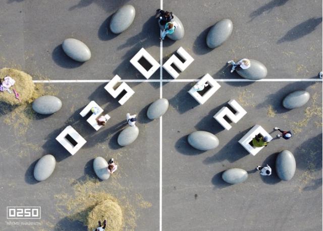 Камень Времени и бетонные цифры использованы как зоны отдыха для детей и взрослых.