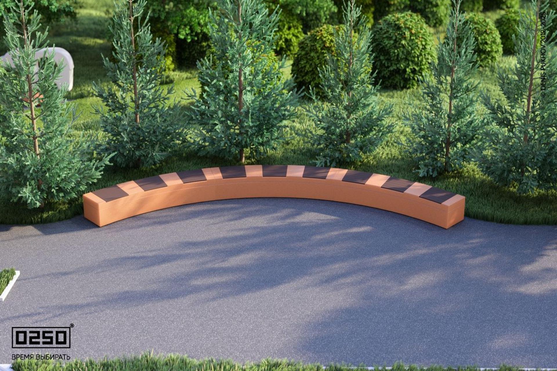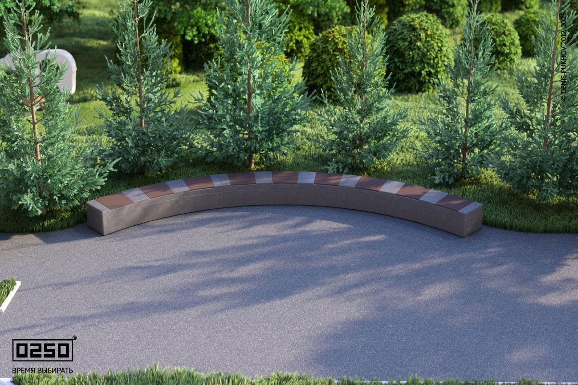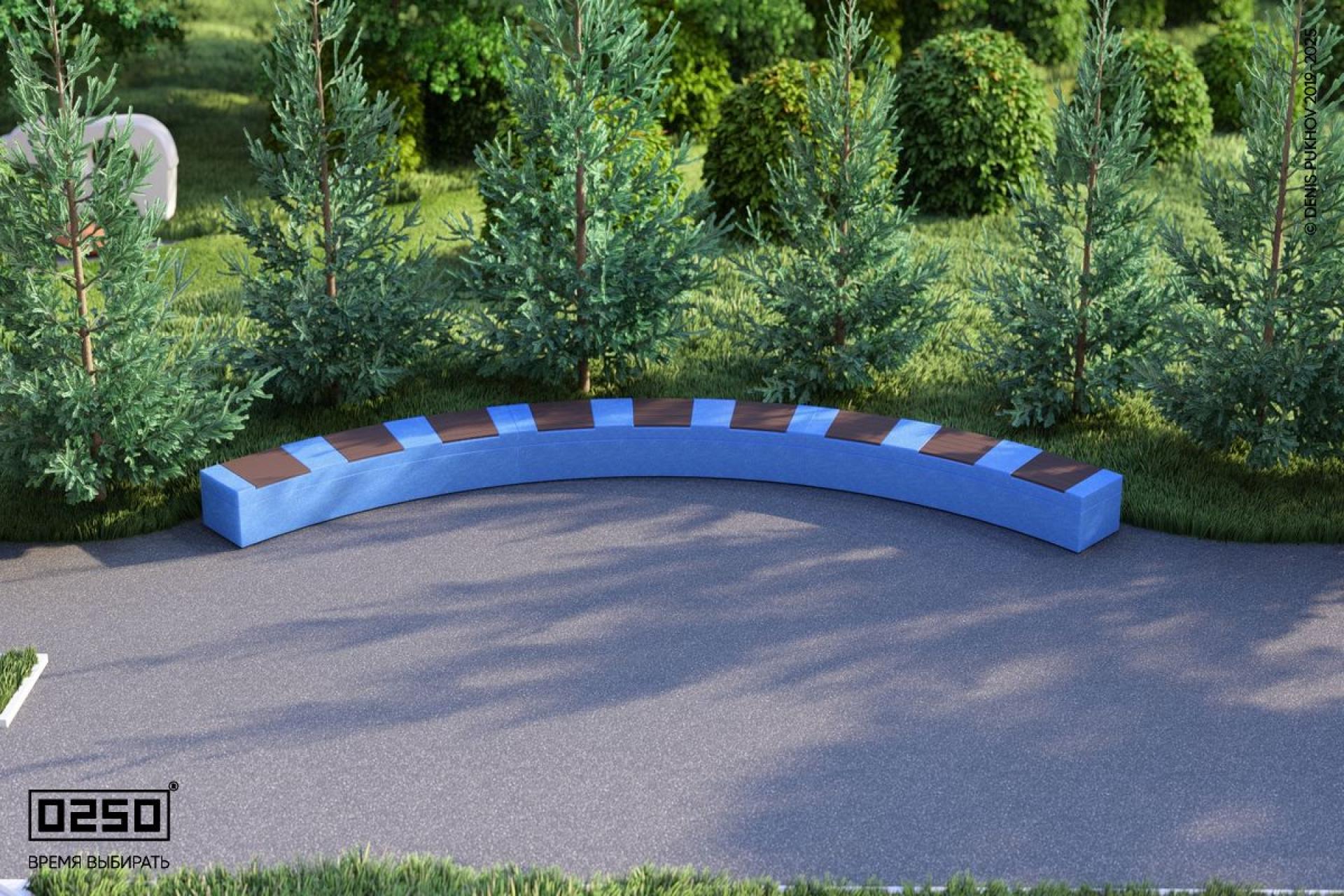 - Состав модулей: Скамейка большого радиуса с настилом на блоке — 3 шт.