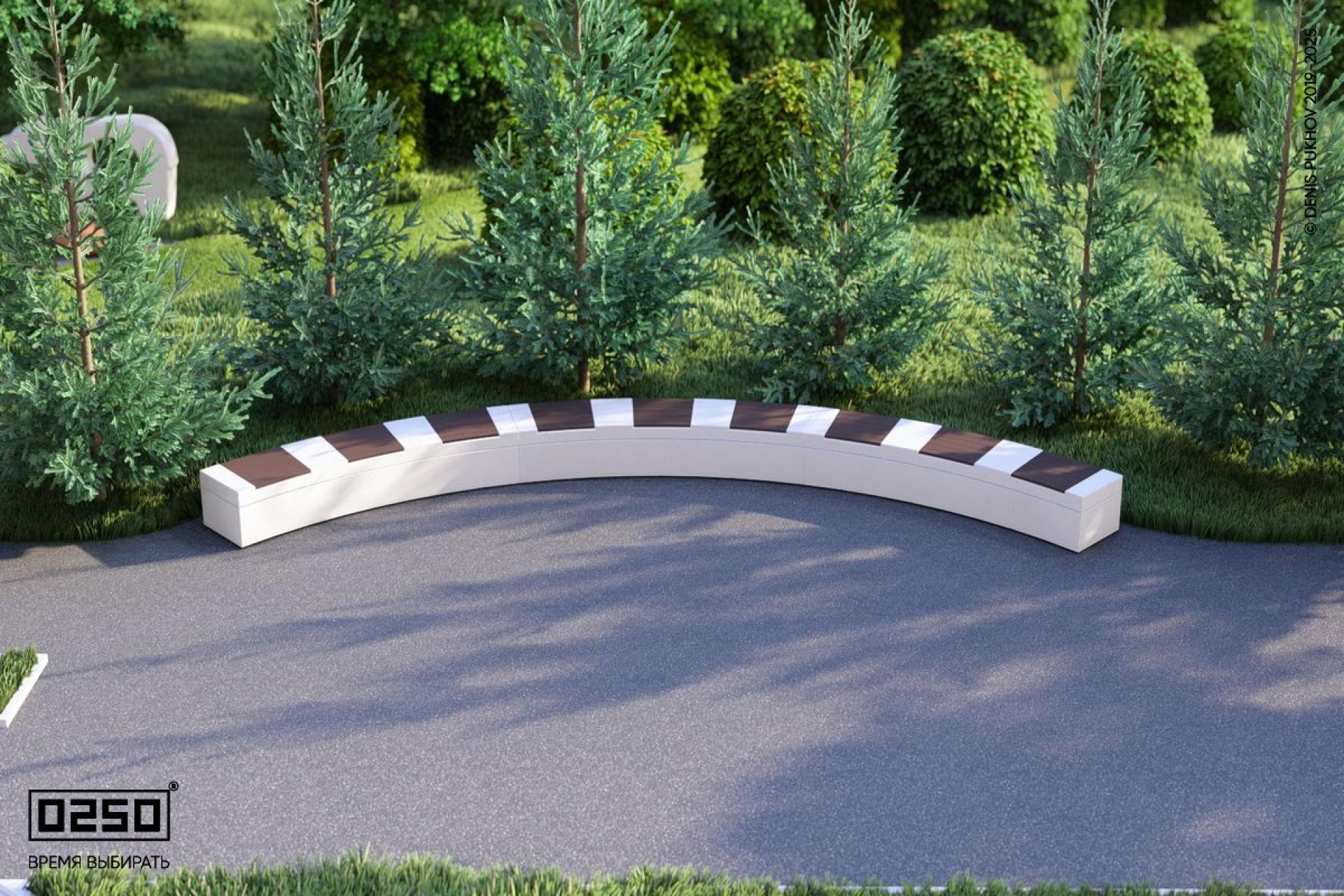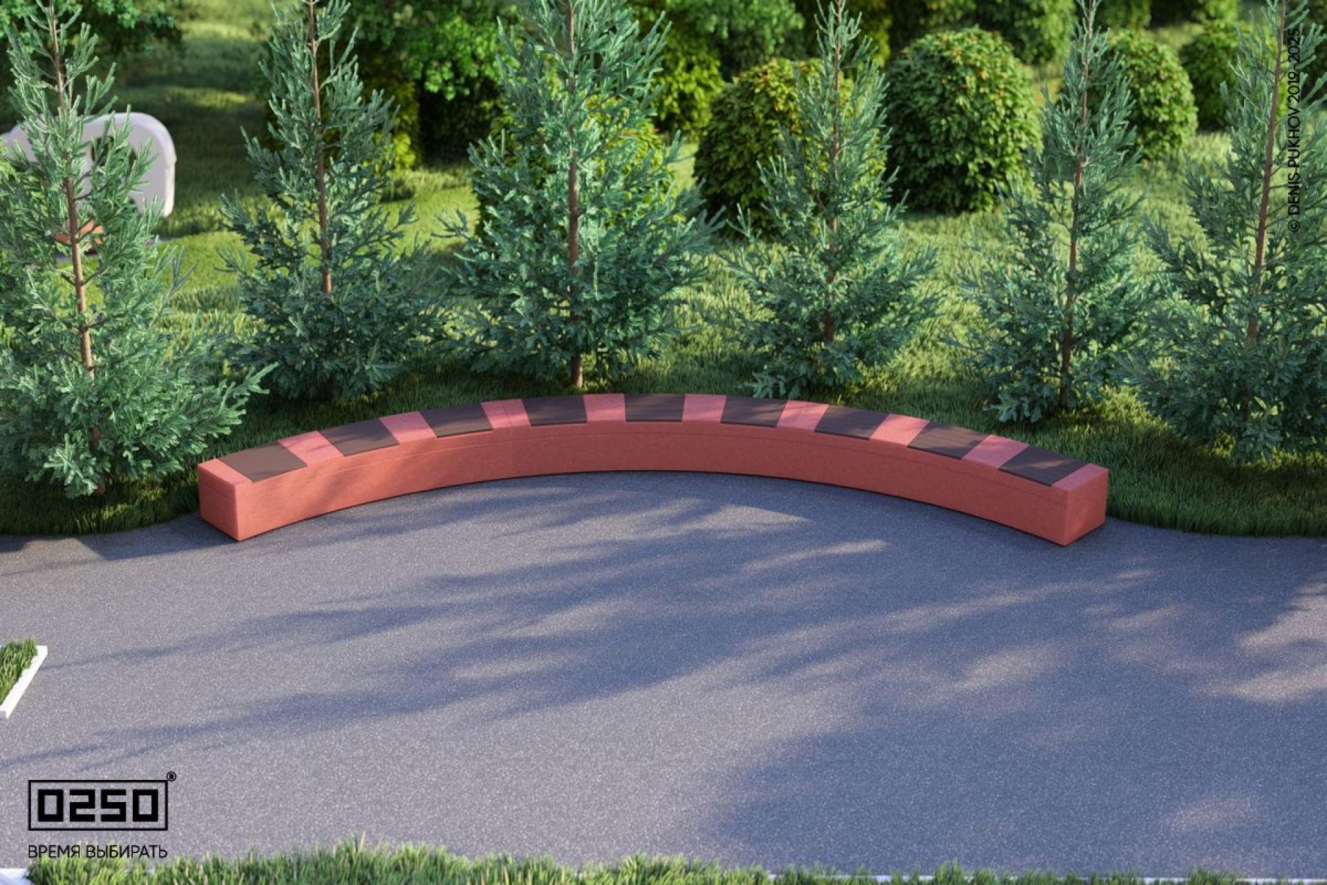 - Описание: Уличная для благоустройства общественных мест. Радиальная модульная в форме части кольца. (состоит из радиусных скамеек). Состоит из трех последовательно соединённых скамеек. Состоит из частей кольца с углом дуги 30 градусов диаметром 10 метров. Опора на ножках из полимеризированного алюминия.