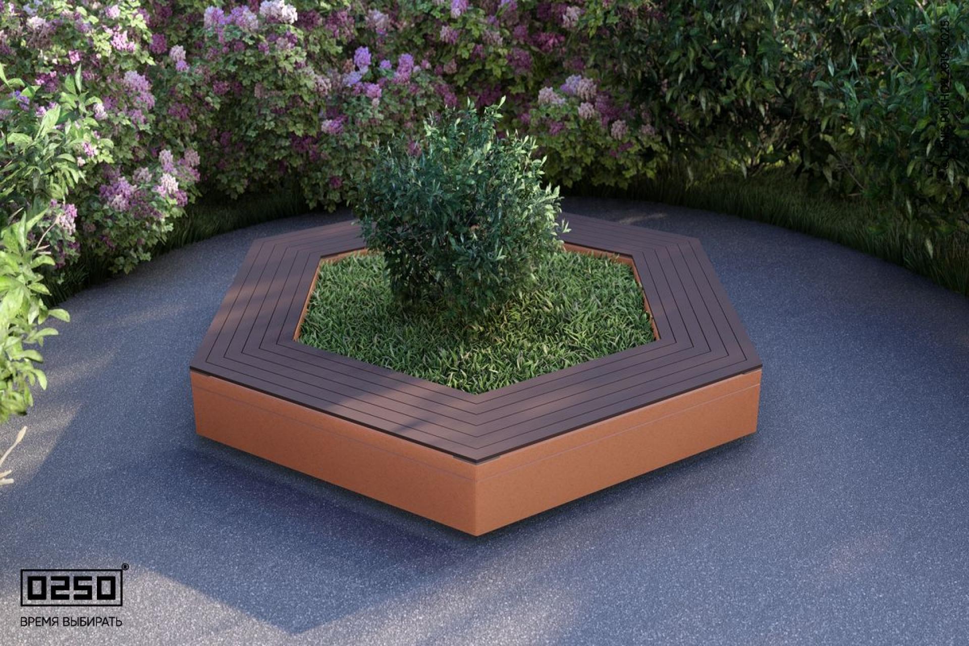 - Описание: Замкнутая модульная Уличная для благоустройства общественных мест. с шести сторон образует форму правильного равнобедренный шестиугольник. (состоит из трапециевидных скамеек). Уличная для благоустройства общественных мест. Замкнутая модульная на блоке внутренне пространство которой заполнено землей, предназначенной для украшения цветами и декоративными. Растениями садов, скверов, бульваров и парковых пространств.