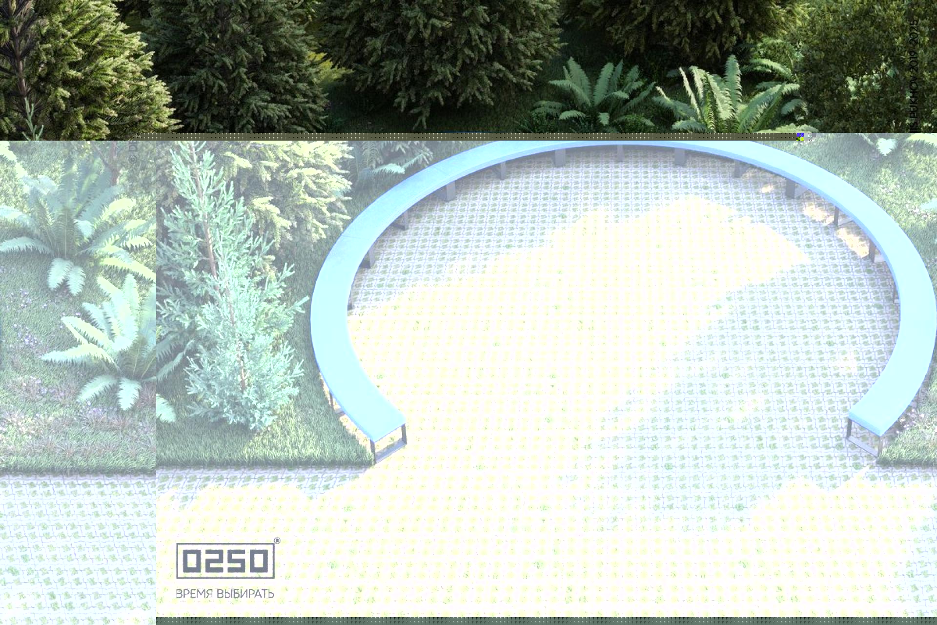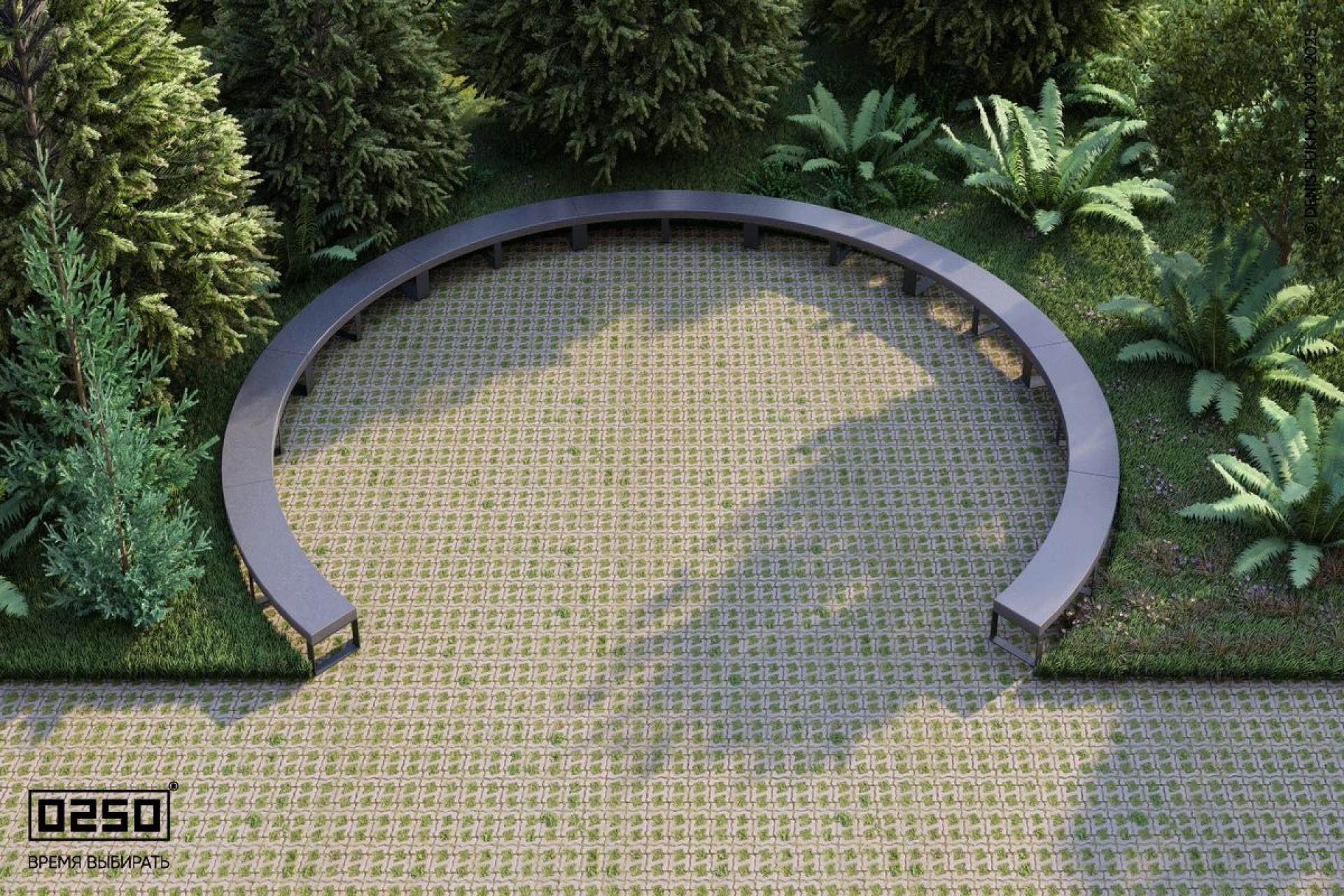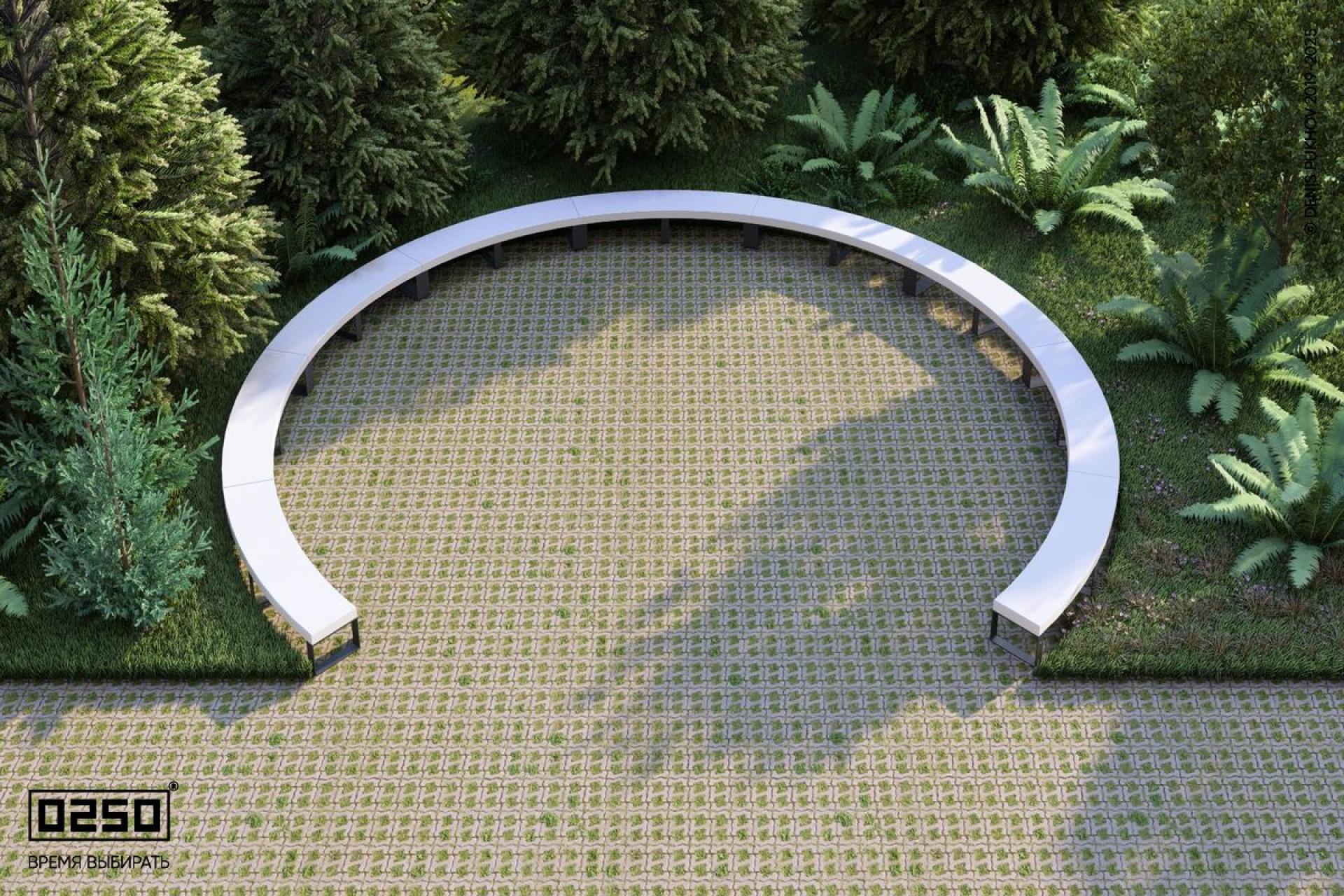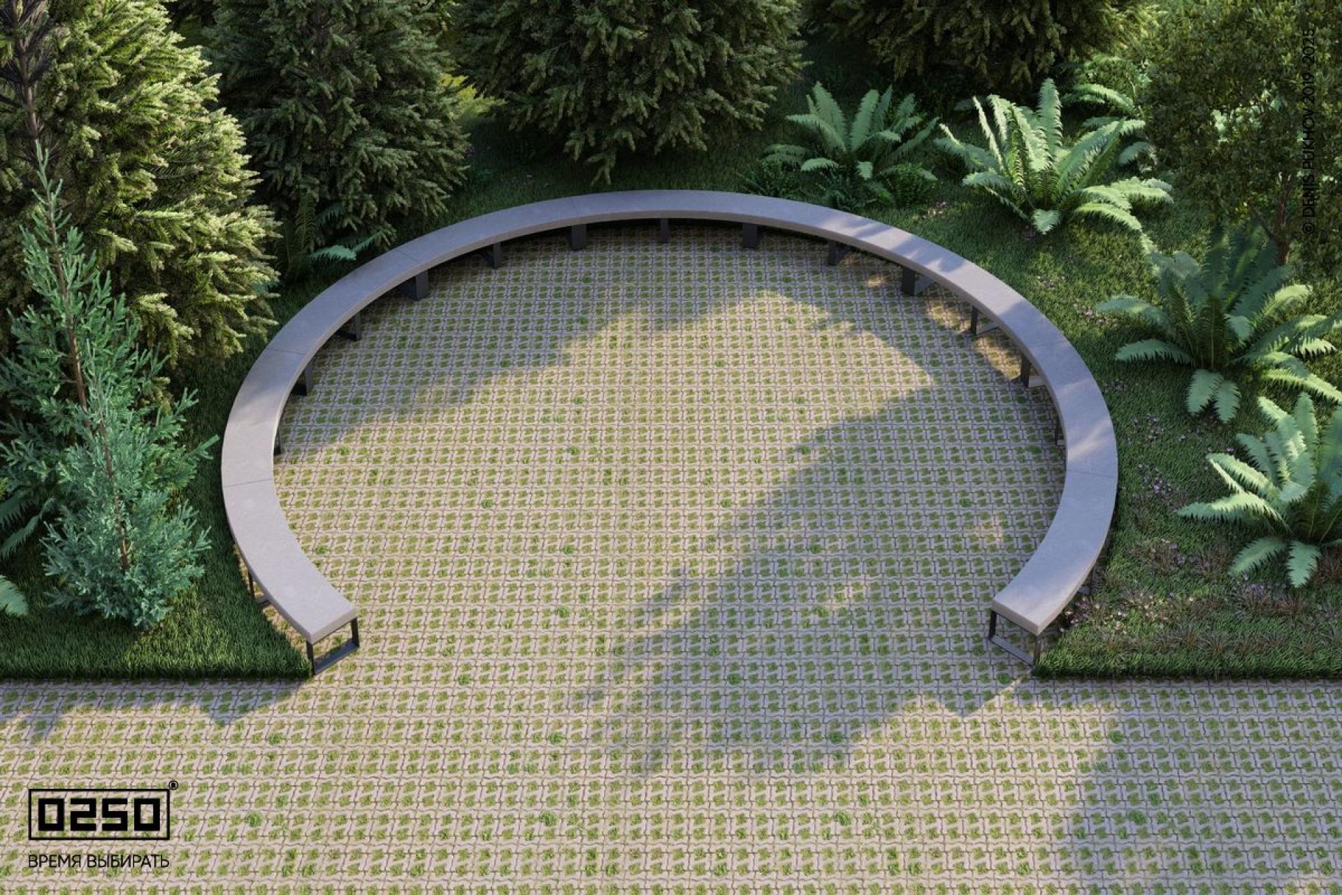 - Состав модулей: Бетонная скамейка большого радиуса на ножках — 9 шт.