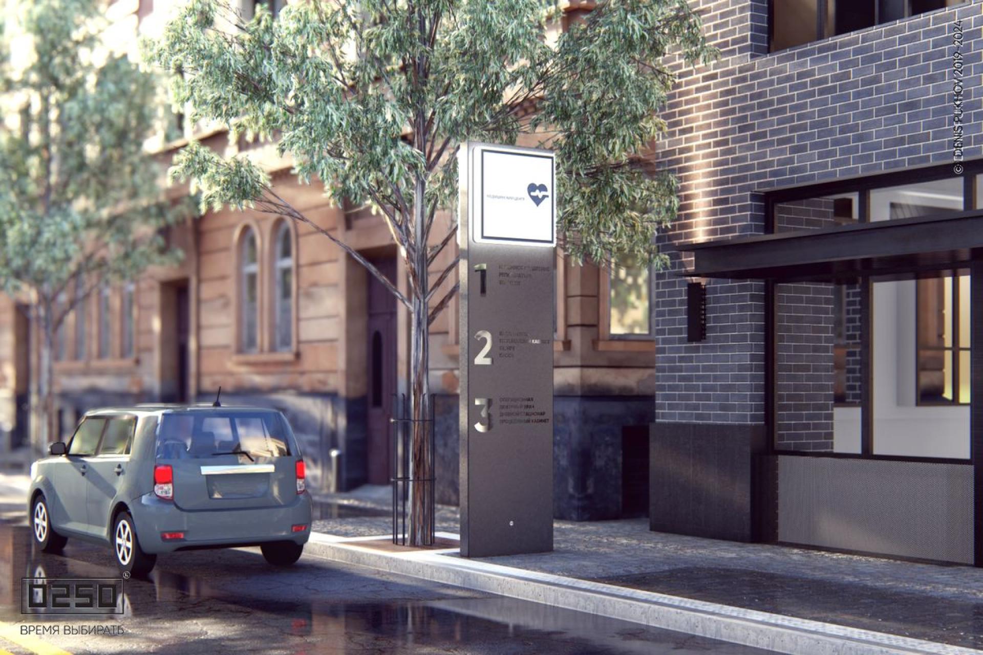 Стелы снабжены круглыми и квадратными информационными табло, которое подсвечивается в темное время суток. Табло расположено достаточно высоко, чтобы не мешать трафику и быть заметными издалека, а важный текст едва ли окажется под слоем граффити, наклеек и листовок.