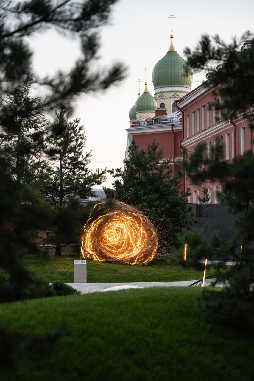 Каждый уголок здесь наполнен лаконичным стилем и атмосферой творческой свободы. Белоснежный Камень Времени идеально вписался в интересную арт-инсталляцию во внутреннем дворике. В симбиозе со скульптурой NIDUM от splaces.studio они создали по-настоящему удивительную и наполненную смыслом композицию.