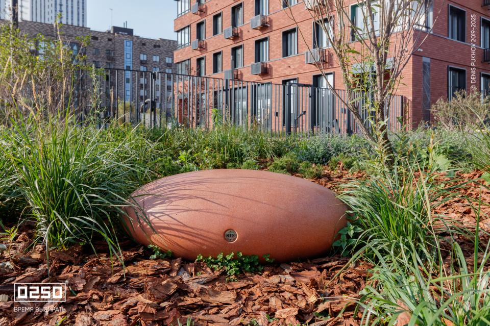 Камни Времени в фактуре Красный Марс идеально вписались в общую палитру ЖК и как бы связали воедино фасады и дворовую территорию. Выбор ярких фактур арт-объектов смотрится выигрышно в любое время года. Зимой они будут ярко выделяться на заснеженном полотне, летом создавать яркий контраст с зеленой травой, а осенью дополнят теплую картину природы.