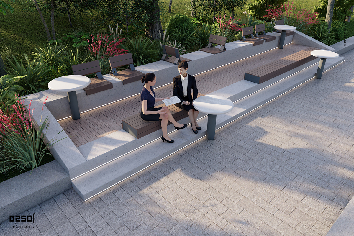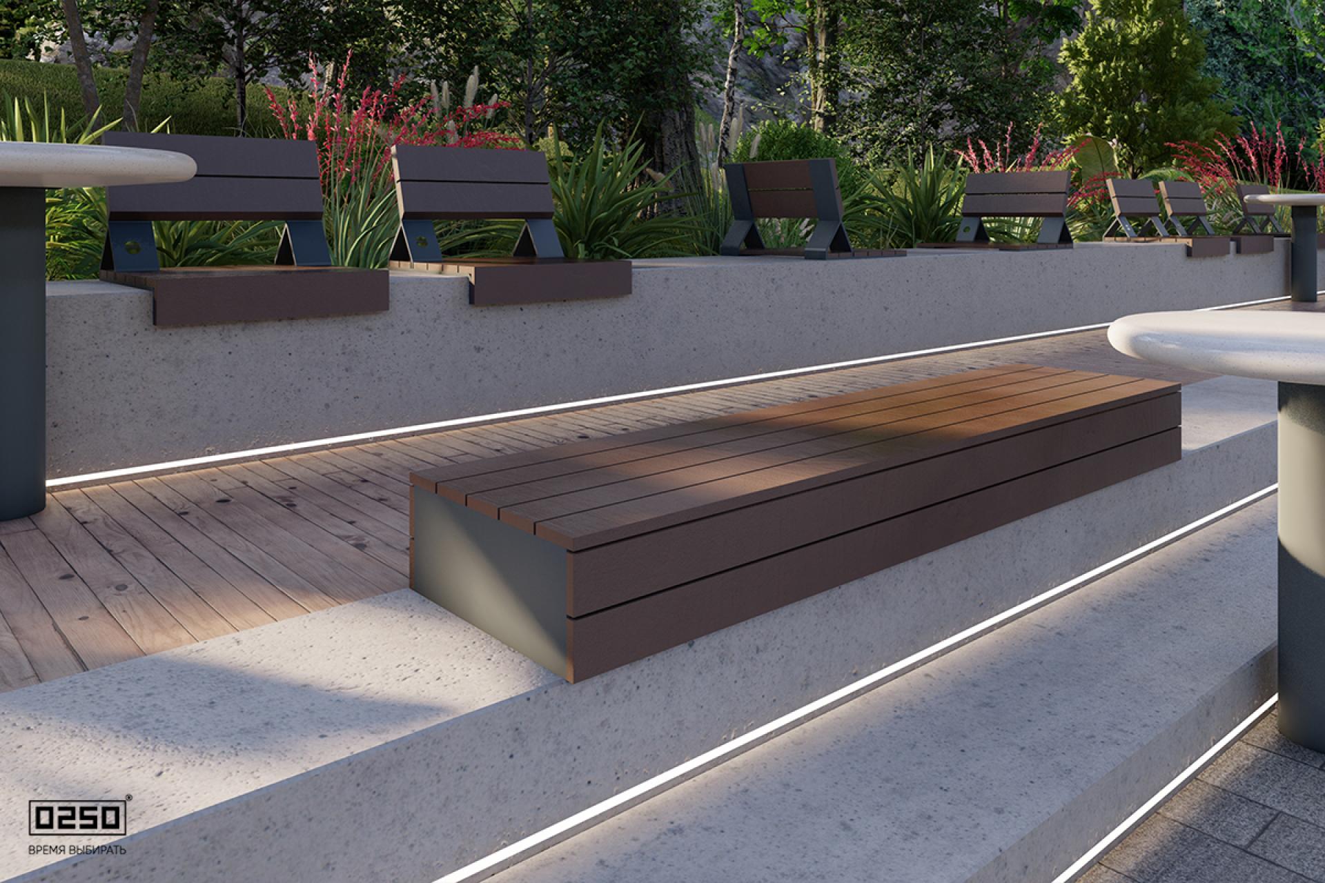 Скамьи-настилы соответствуют общему концепту 0250 и трендам в современной архитектуре: