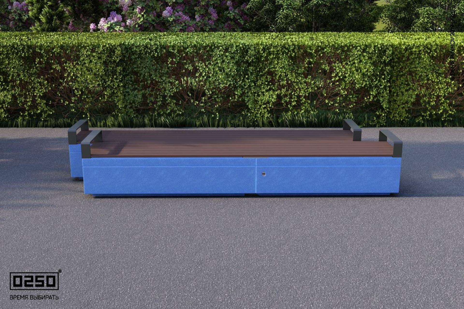 - Сиденья скамейки: Щелевой настил из термодревесины, не контактирующий с бетоном с подлокотниками
