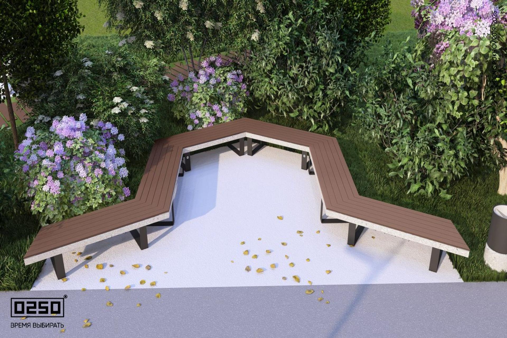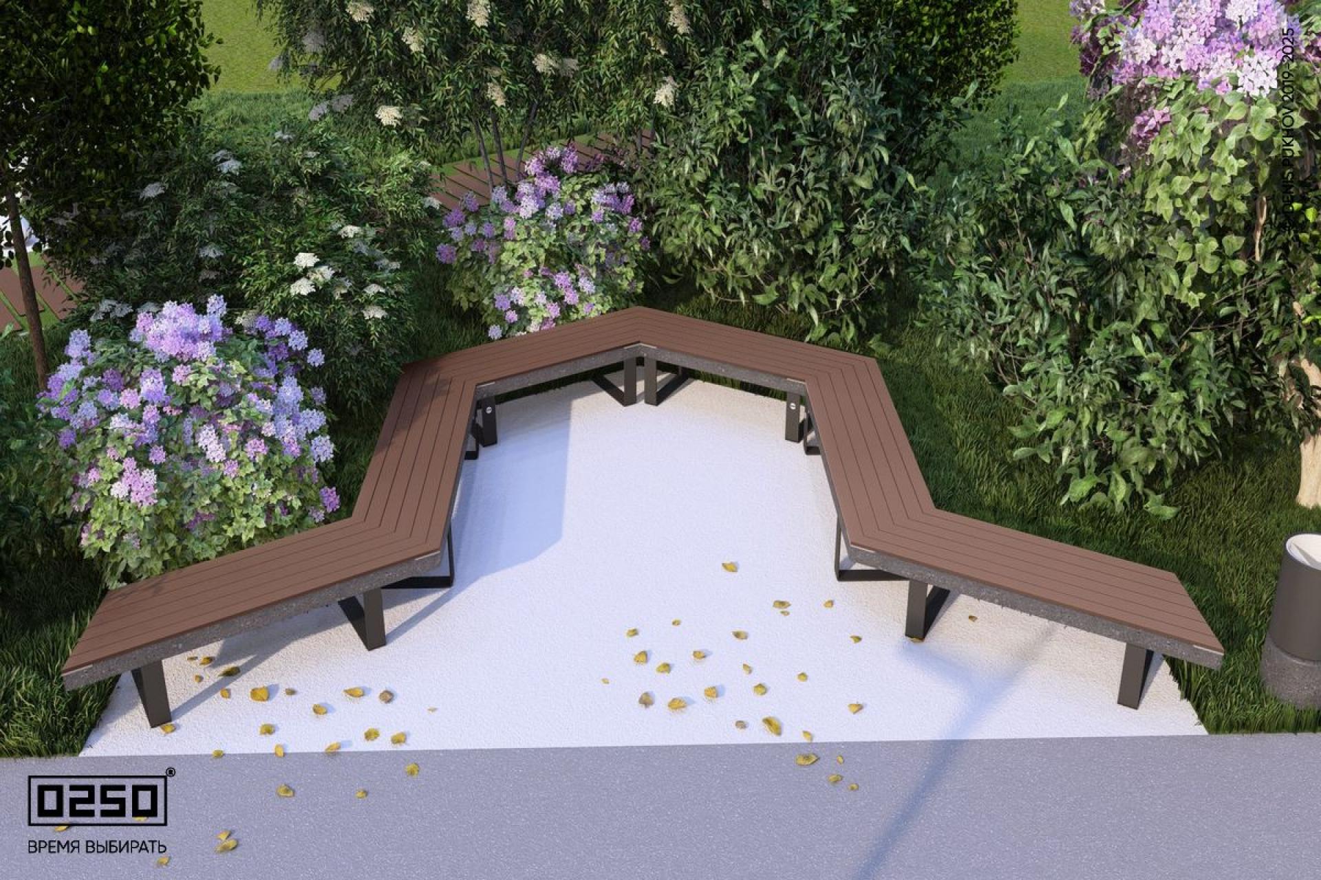 - Сиденья скамейки: Щелевой настил из термодревесины, не контактирующий с бетоном.