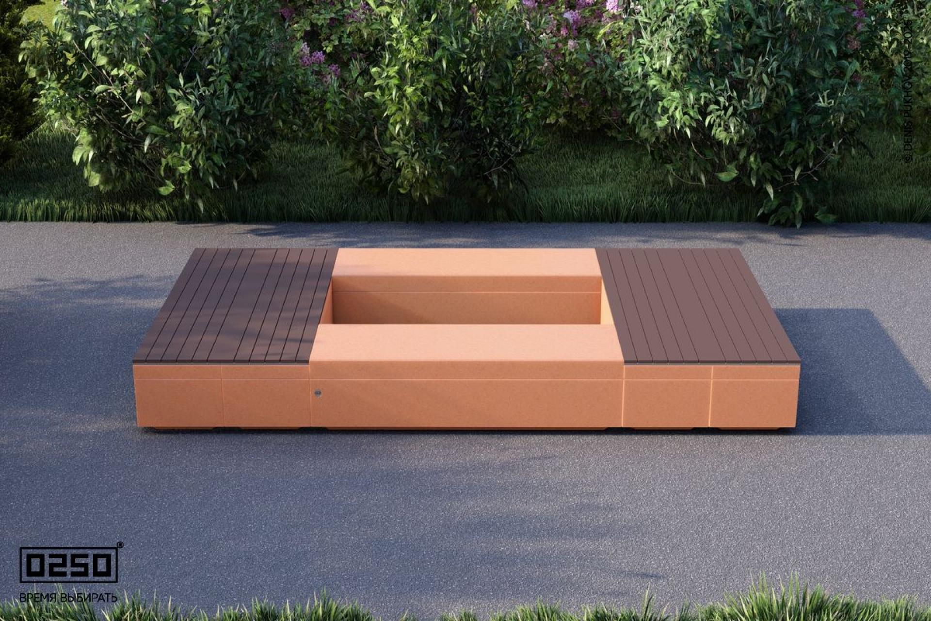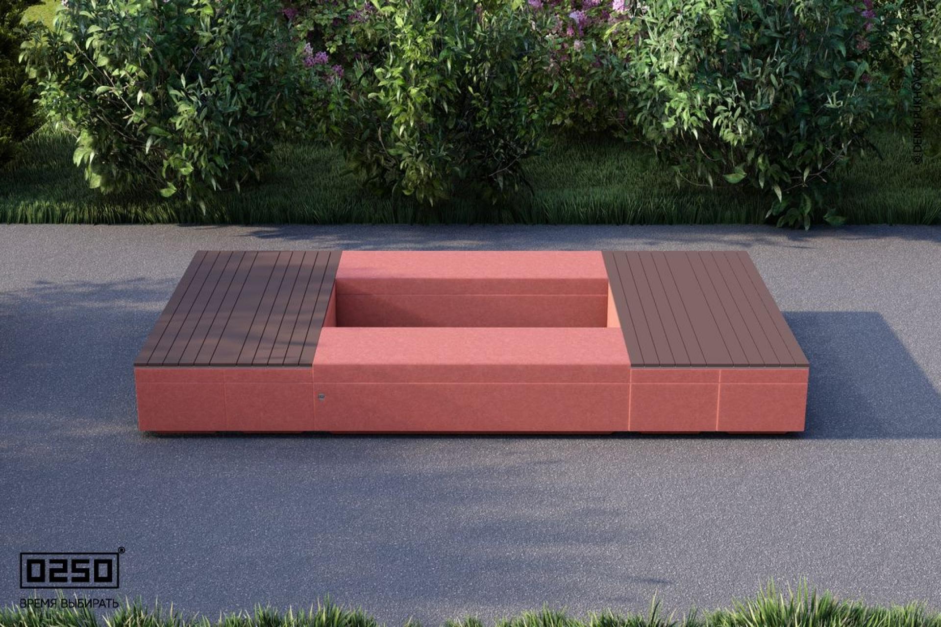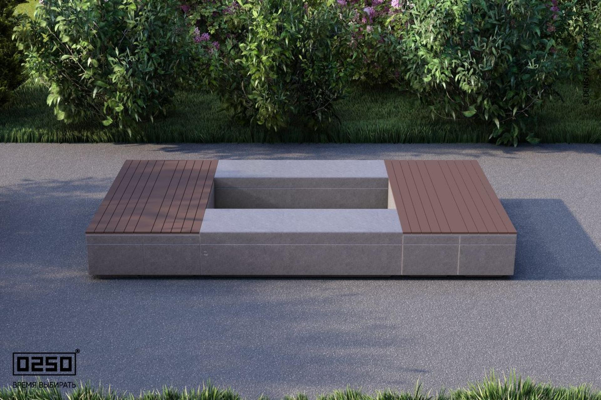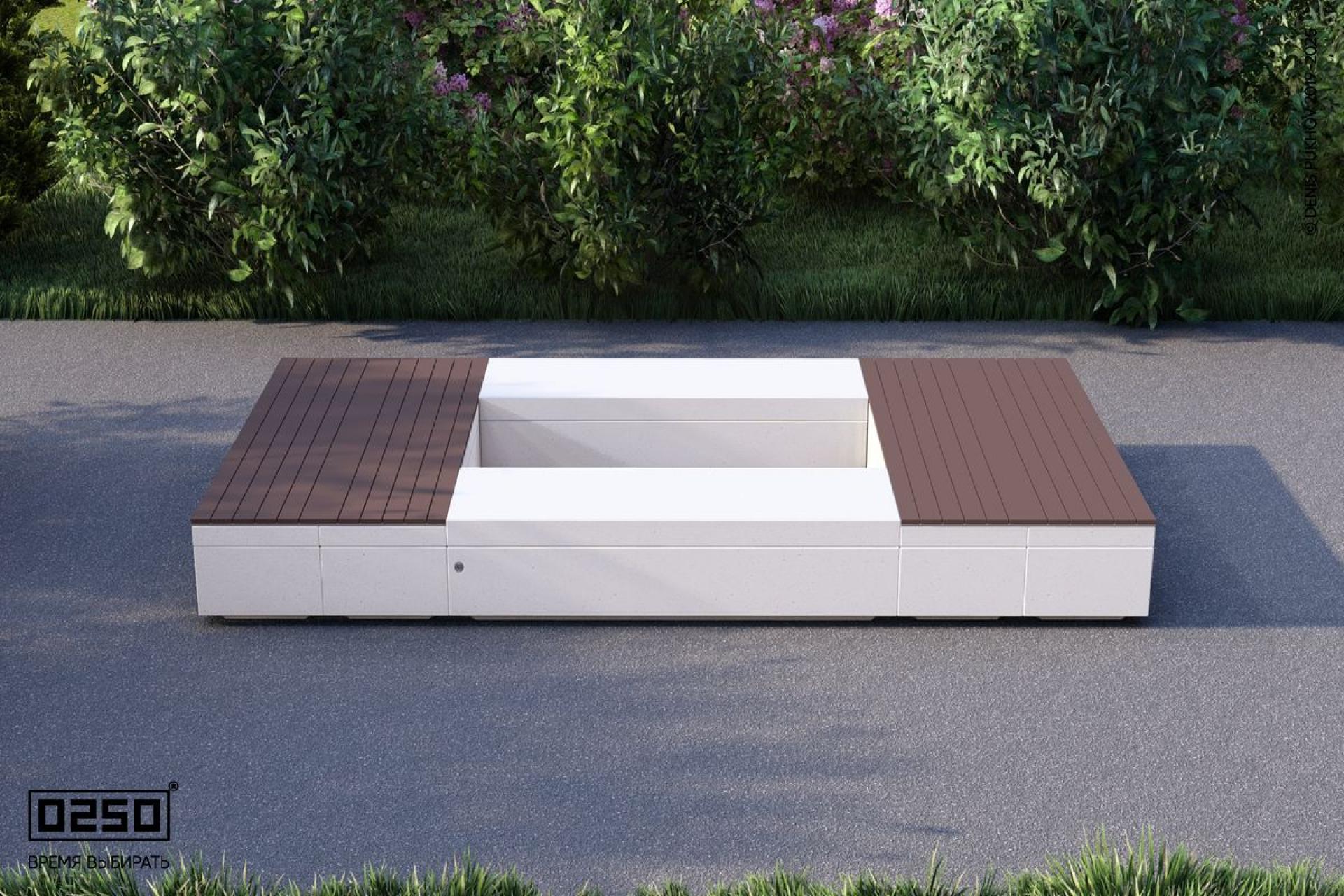 - Описание: Уличная для благоустройства общественных мест. Замкнутая модульная с четырех сторон образует форму прямоугольника (состоит из прямых скамеек). Ширина в два ряда. и комбинированным настилом Опора на блоке из полированного до глянца ультра-прочного бетона.