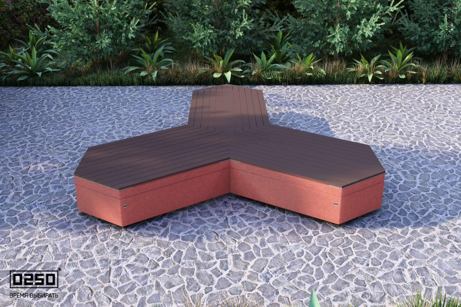 - Описание: Лучевая модульная образующая фигуру состоящею из трех скамеек, расходящиеся от центра.(состоит из прямых и скошенных скамеек). Лучевая модульная в два ряда, прикасающиеся тыльной стороной. (состоит из прямых и скошенных скамеек). Уличная для благоустройства общественных мест. Опора на блоке из полированного до глянца ультра-прочного бетона.
