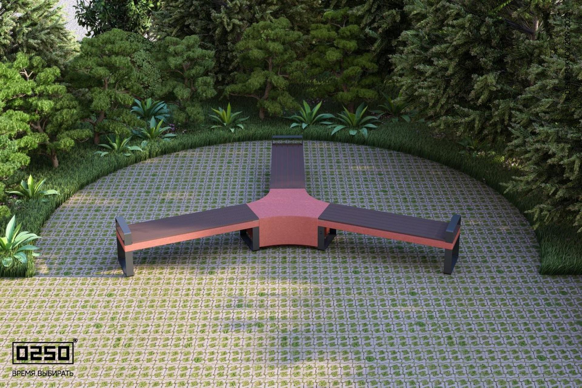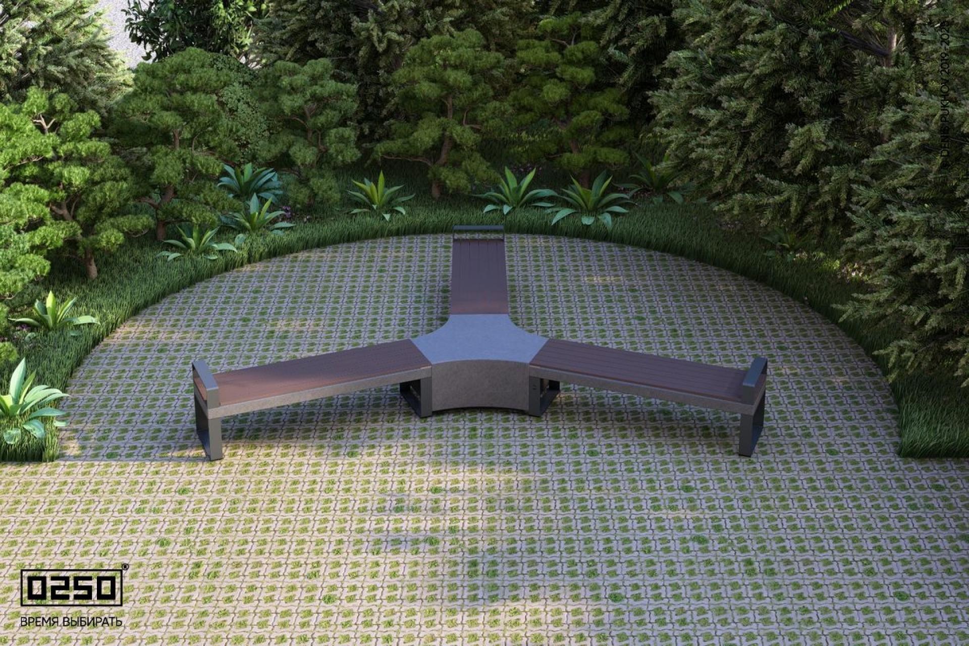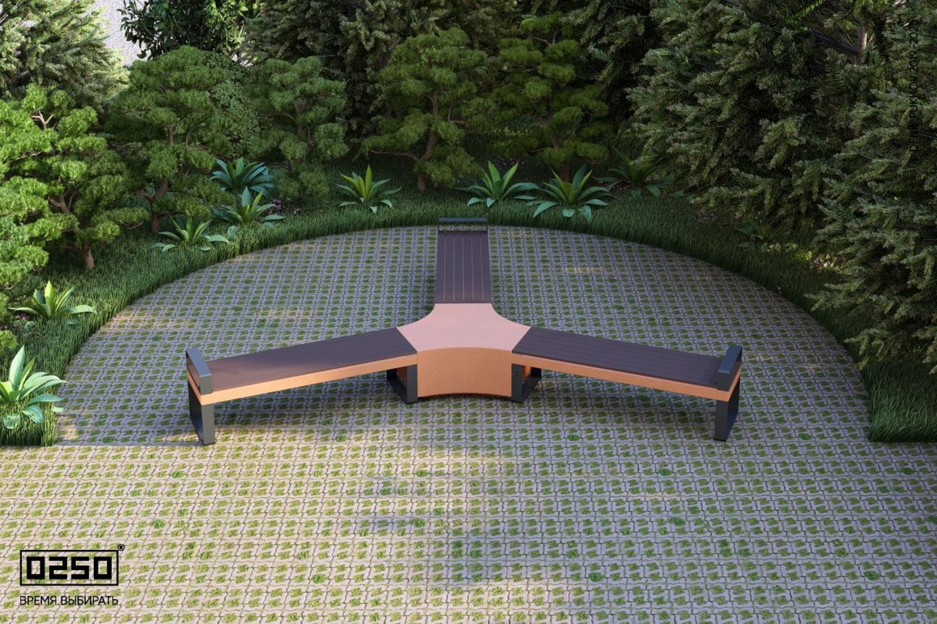 - Название: Трехлучевая скамейка с трилистником с редкими подлокотниками на ножках