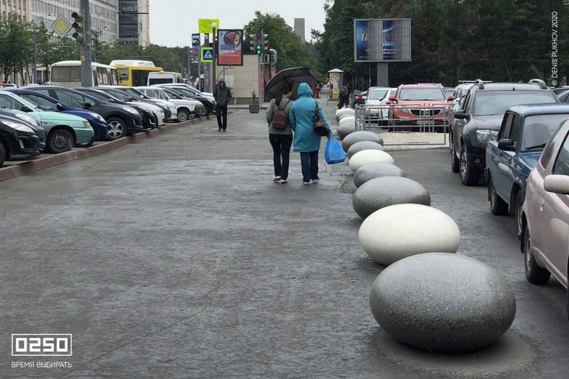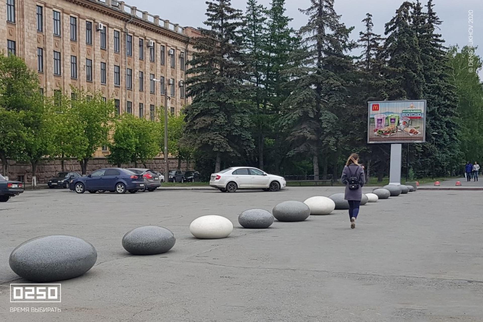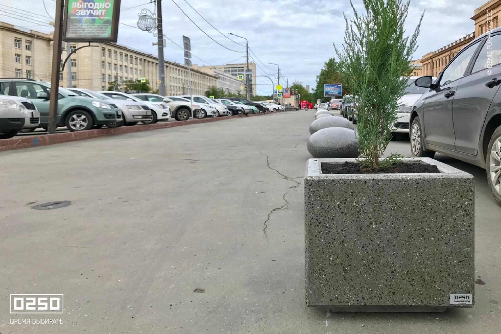 Для обеспечения необходимого уровня безопасности было создано стильное и эффективное зонирование при помощи арт-объектов Камень времени в фактурах Серый графит и Белый кварц. Они гармонично вписались в городской пейзаж, не разрывая архитектурно-пространственную среду.